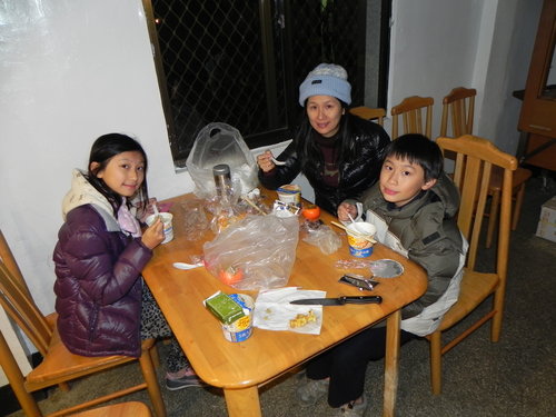 第一天的晚餐就在販賣部解決了,連旁邊的露友都離開炊事帳一起進來這裡取暖。