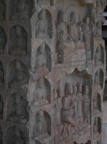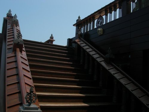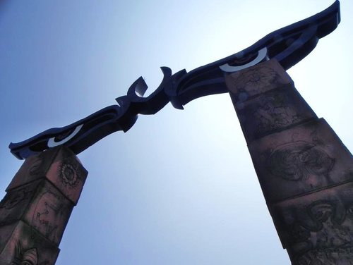 道場的門口可以看見一對銳利的鷹眼,兩側矗立的石柱上有所多的圖騰,稱為「天眼門」。