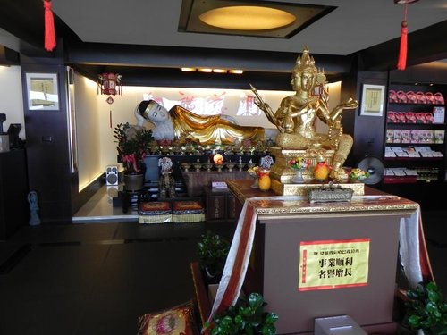 唯一有冷氣的臥佛殿內供奉著玉面左臥佛像。