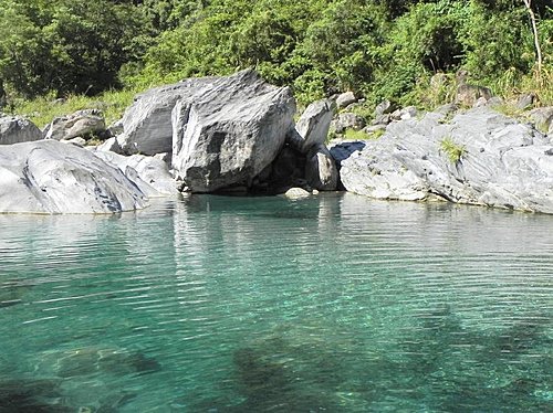 沿路可以看到河谷縱切地形的美及湛藍的溪水。