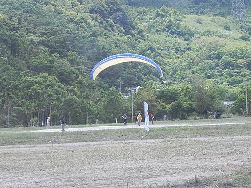 就在快到時發現這個飛行傘,原來在林田山園區門口的空地正在舉行2011第一屆海峽盃飛行傘邀請賽。