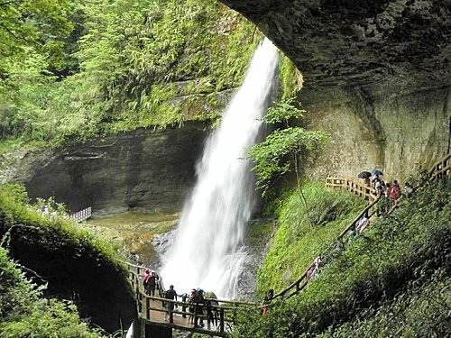 松瀧岩瀑布在梅雨季節時水量充沛,氣勢磅礡,被公認為杉林溪的首景,沿著這條步道過去要小心水滴ㄛ。
