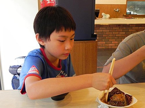 經過千辛萬苦,看著一輛輛公車呼嘯而過,終於到了松瀧岩瀑布旁的休息區了,小朋由隨意的吃了一些東西後開始投藍了,為的是要炫耀這2週的成果,成果還是需要再加強 ><"。