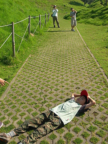 小朋友這麼隨性的舉動,就這樣在走道上躺了下來。