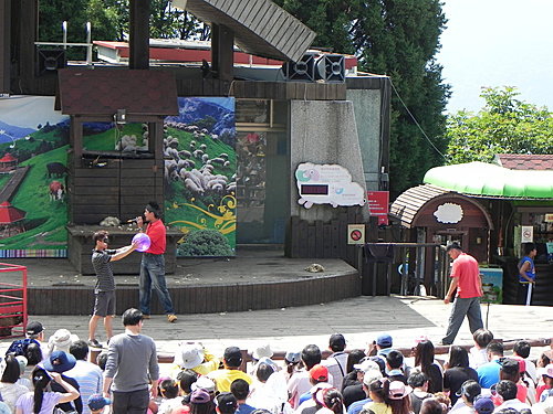 欣賞綿羊秀的過程中2個小朋友抽空表演。