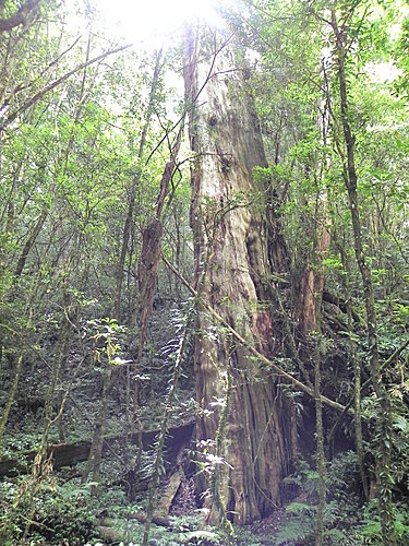 來到司馬庫斯當然要到巨木群看看,第2天吃完早餐就出發了,因為光是入口處到巨木群就要5公里,再加上其他的路段來回約11-12公里ㄛ,導覽人員昨天說,我們一般人約5小時可以走完,部落的婦女小孩約2小時可以走完,而部落的年輕人約40分鐘可以走完,讓我們目瞪口呆,還好又加了一句~~~是騎摩托車啦,因為要巡山及撿拾大家所遺留的垃圾偶而當救難隊,這樣比較方便。