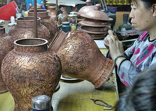 導遊帶我們參觀景泰藍工廠,其他團只能在外面看,這個導遊人面很廣ㄛ。