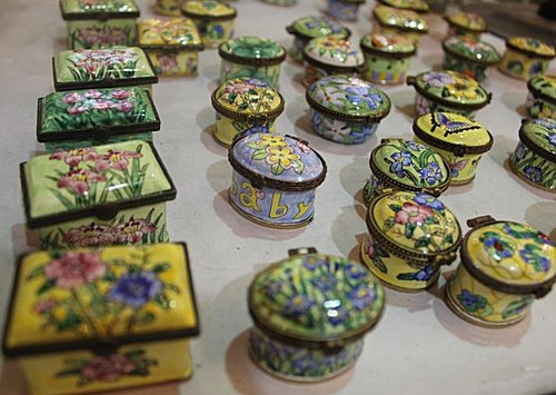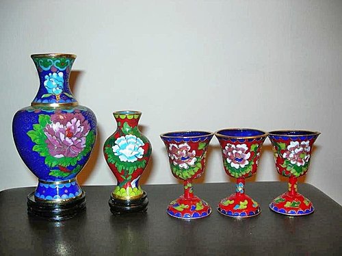 由於許多原因,大陸一位大師研發出這種新產品,將景泰藍的作品放在木板上。