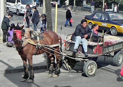 交通最繁忙的北京,連馬車都出來了。