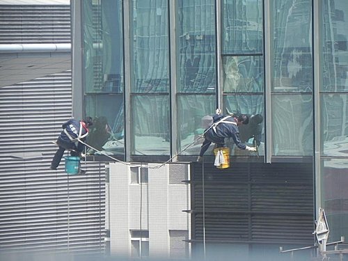 搏命演出的大樓清洗工人,這棟大樓超過30層ㄛ。