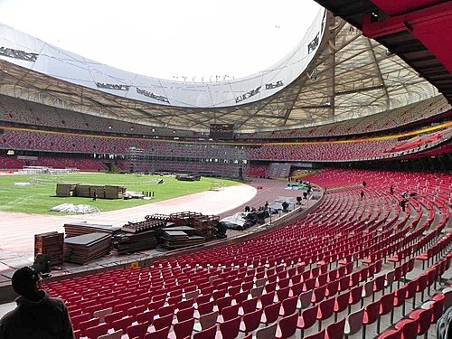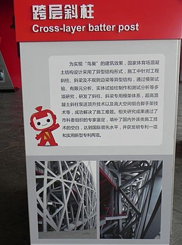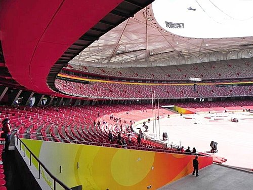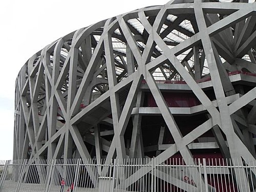 鳥巢是由一系列輻射式門式鋼桁架圍繞碗狀坐席區旋轉而成,結構科學簡潔,設計新穎獨特,為國際上極富特色的巨型建築。