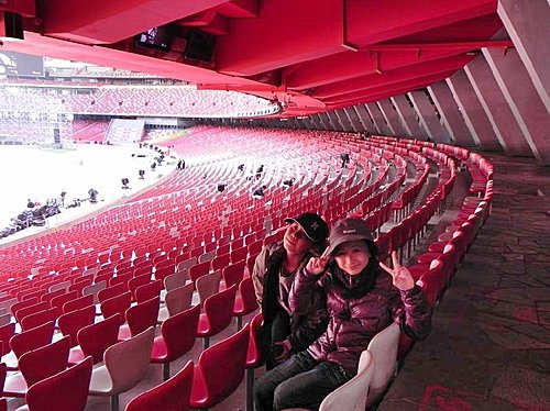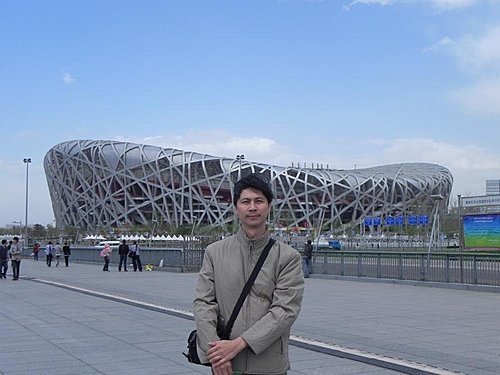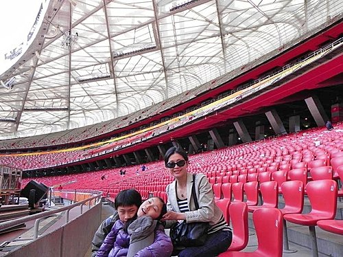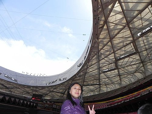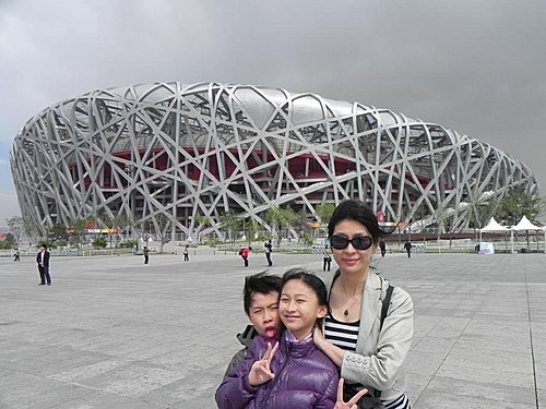 導遊建議拍鳥巢最好的角度,但是因為今天風超大的,所以群髮飛揚。