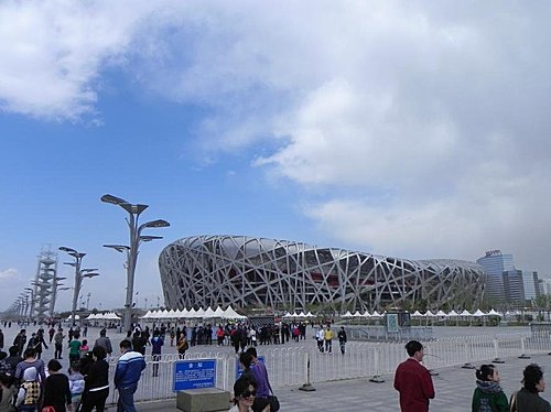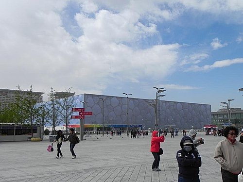 旁邊就是水立方了,導遊說看看外觀就好了,裡面就是游泳池而已。