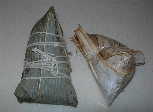 左邊的是紅豆沙粽,右邊的是一般的粽子。