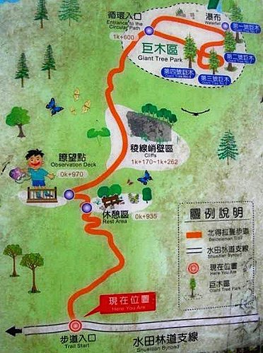 到了登山口已經有7台車子到這裡了,不怕寂寞喔~~~旁邊也有詳細的地圖,原本在家查詢一趟約2小時50分鐘,到這裡一看居然需5-6小時,昏倒