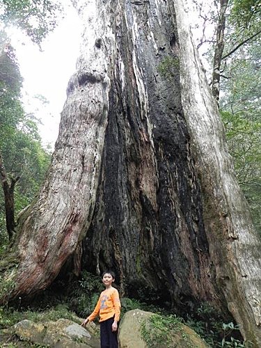 這是第1號神木,我覺得這是最大的,但是樹身有燒焦痕跡,應該是被雷擊的,不知道是否還存活的。