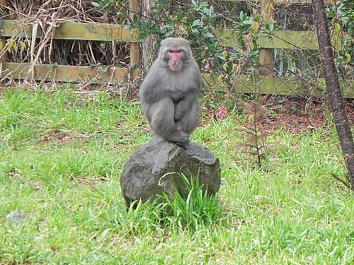 這是在小木屋旁意外發現的台灣獼猴,後來才知道在雪山登山口有告示請勿餵食猴子,可能是那裏跑下來的。