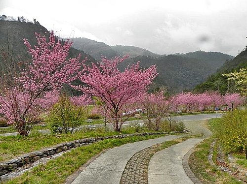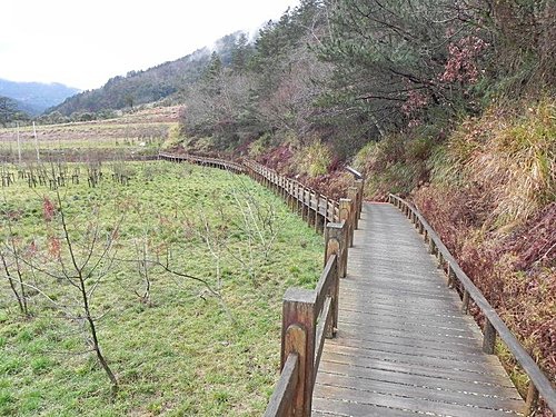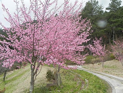 花海區旁邊可以通往木棧道,部分櫻花目前積極培育中。