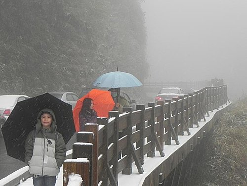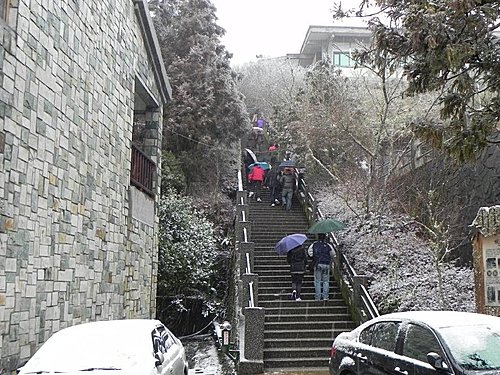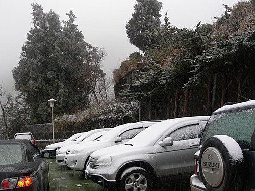 靠近遊客中心這裡一位難求,不過車子被雪覆蓋的奇景終於親眼看到了,這些都是昨天就上來太平山的。