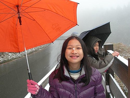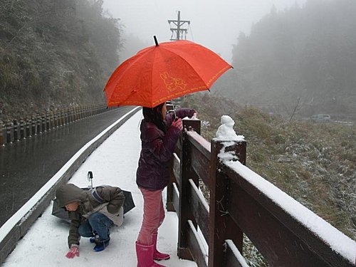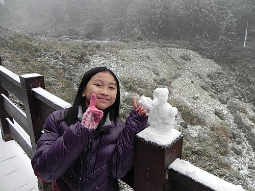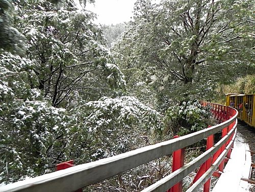 拼著下雨及寒流來到宜蘭,隔天早餐時請民宿老板問一下太平山下雪了嗎?結果不錯06:40下了一下會兒的雪,決定去碰碰運氣。