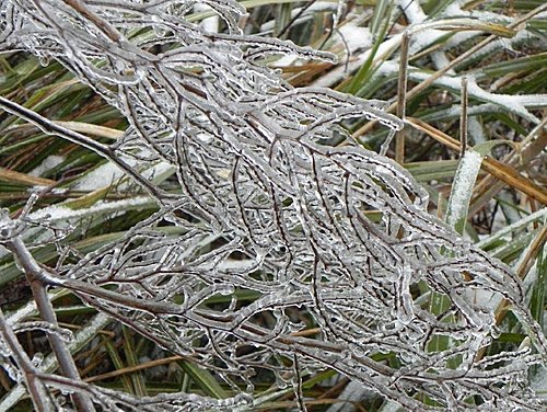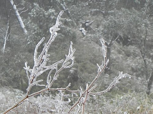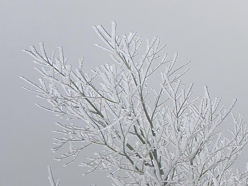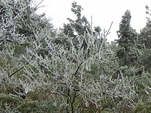 沿路的樹木被雪給包覆,形成特殊的景觀。