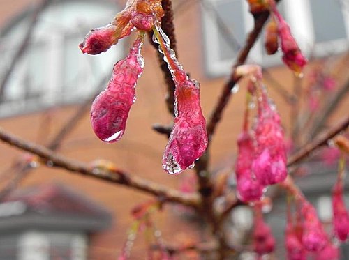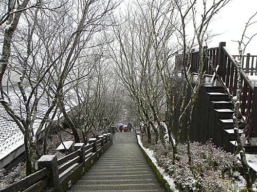 遊客中心這裡的階梯兩旁的樹都被雪所覆蓋。