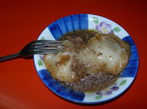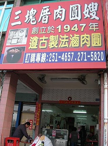 台灣肉圓依口味可分為油炸及清蒸兩種,網路上說~~~三塊厝肉圓嫂獨特的料理作法又自創一格,先將豬胛心肉加醬油、蒜頭爆香做成肉燥,放入鍋中拌肉塊一起炒,再倒進特製滷汁入味,接著包入凝固的米漿後放入蒸籠,待蒸熟又放回滷汁中浸泡,讓滷汁味道完全滲透肉圓,不少饕客慕名而來品嚐。