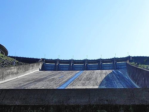 石門水庫的水壩位於大漢溪中游,水壩高度約有133公尺,溢洪道共有6座閘門並有後池堰、發電廠、石門大圳和環湖道路等設施,從壩底公路即可到達石門水庫大壩區,石門水庫水壩是大雨後遊客欣賞洩洪壯麗景觀的最佳去處。