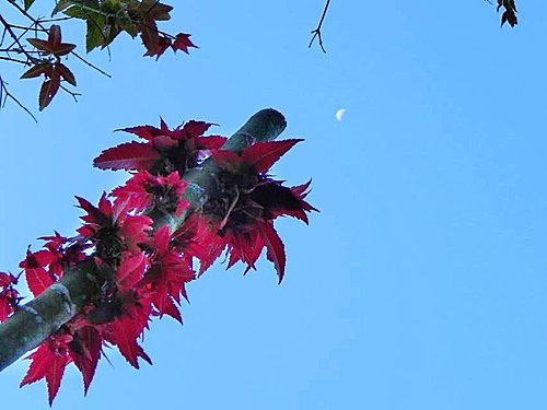 鑽石林的楓樹還沒看到葉子,而這不知道是什麼樹已經變紅了。