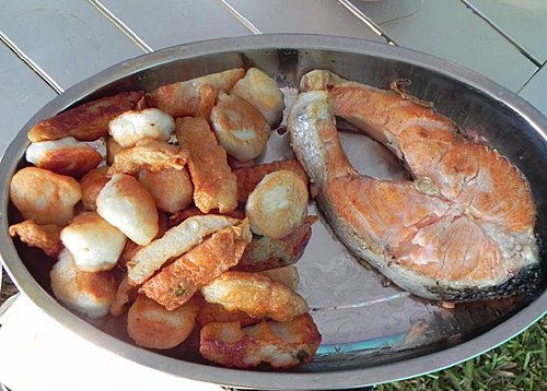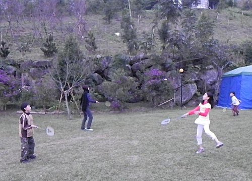 回到營地後,小朋友繼續打球....下象棋,而我則是收拾帳棚........,媽媽當然是準備午餐了。
