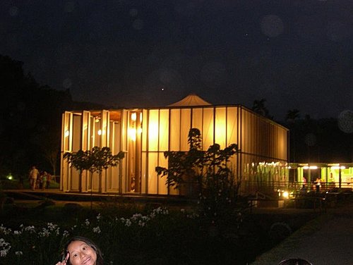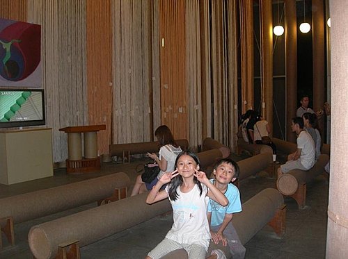 網路上說~~~這座野田北部居民暱稱為Paper Dome的紙教堂,是以成本較低的玻璃纖維浪板構築成長方形的外牆,內部則用五十八根紙管(長度5m、直徑33cm、厚度15mm)建構出一個可容納八十個座位的橢圓形空間。坂茂利用紙管構成的橢圓形與外牆之間的空間形成一個迴廊,屋頂則覆蓋以透光的天幕,當光線由屋頂射下,形成一種莊嚴與神聖的氛圍。這座紙建築設計的原始目的,是作為社區的集會中心,但禮拜天亦兼作教會的彌撒場地。