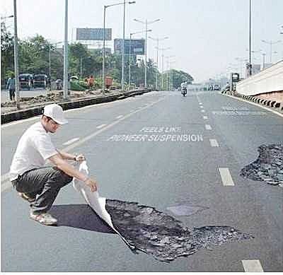 我不知道你會怎樣, 但是我一定會減速! 人們都減速並設法"跨過"這個洞 .....