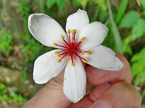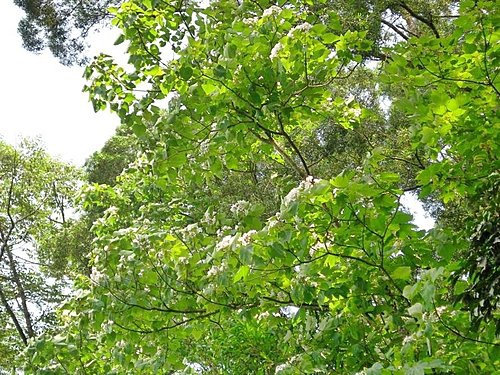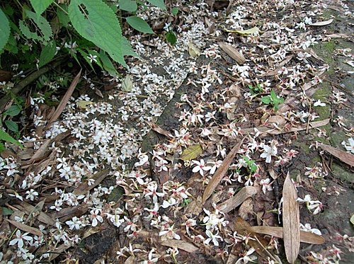 注意到了嗎?這2個油桐花有一點差異,1個是5個花瓣,另一個是6個花瓣,花蕊部分顏色也不一樣,不知道是不是3年桐跟千年桐的差異?