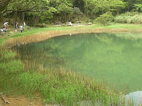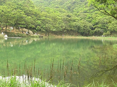 拾階而上,走過一段短坡後,一座由山巒環抱的山中湖泊夢湖,登時出現眼前。這座波平如鏡的小湖,如造訪時天氣晴朗,山影倒映水中,碧綠湖面上有藍天白雲之倒影,真有幾分如夢似幻之感。