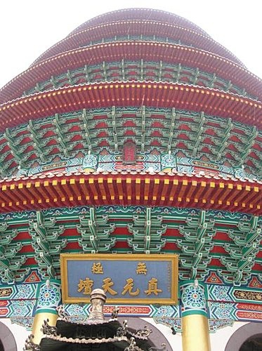 無極元天宮 真元天壇座落於台北縣淡小鎮水源里,原稱水硯頭。交通暢達距淡水市區約五公里,居大屯山脈西北,万低山區地帶.面天山麓丘陵地,依山面海,氣勢天成。由宮前停車廣場,經梅花型五龍池,登21階即入天聖門,拜停上鑲有二龍朝關王無極天元宮本殿。山下天元宮,有龍池井一口,水質甘甜,有人特地來此取水,泡茶飲用稱為上品。轉向龍邊大道直行,視野廣闊,仰膽崧峨雄偉,美侖美奐之真元天壇顯現於眼前。沿九龍神路登階而上,經過大前庭,即可進入真元天壇,膜拜祈福,由前而後步步玄机,氣勢雄偉,有藏龍臥虎之聖山風貌。宮之四週,花木扶疏,綠意盎然,鳥語花香,景色怡人,每逢星期假日,遠近善信,進香祈福,川流不息,實北部新興之宗教聖地也。