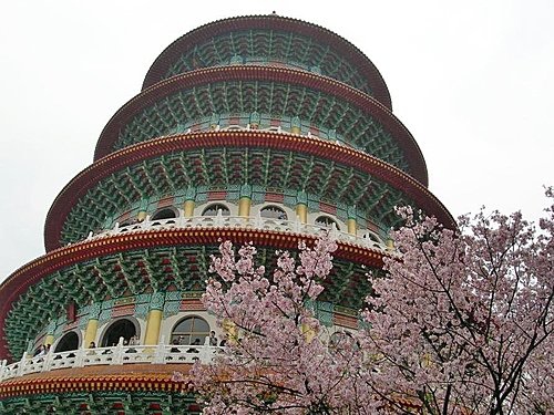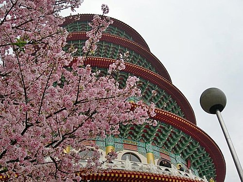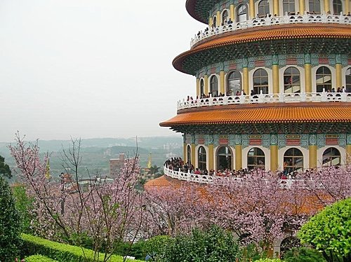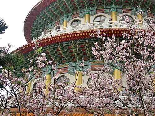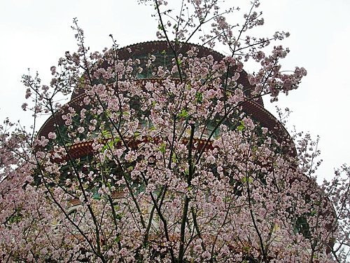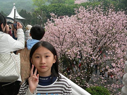 站在無極真元天壇 2樓往外取景是最靠近櫻花的地方,不少人在此拼命的擺出最迷人帥氣的姿勢留念,當然也包括我們。