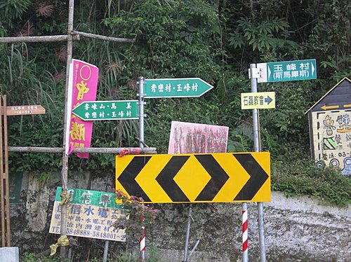 接著走 8km 過玉峰大橋再走 4.3km會看到一個小學Mark 請右轉