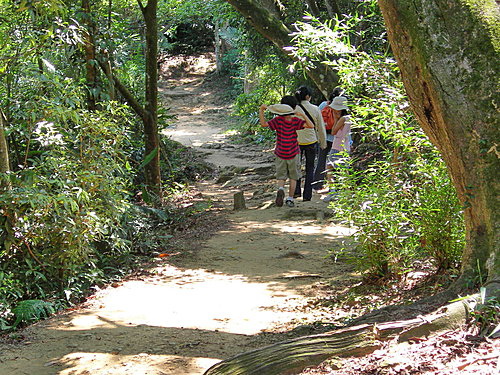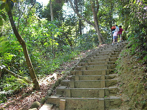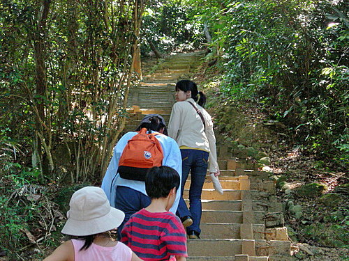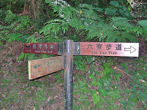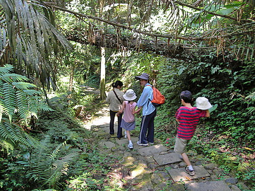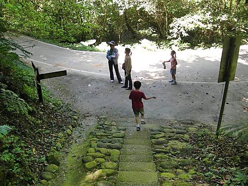 小朋友非常高興看到柏油路面了,本來以為是出口了,看了地圖才知道不是,這是六寮步道(古道)。