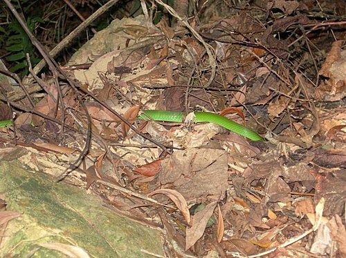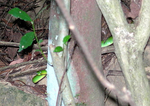 在階梯旁邊草叢中發現綠色的身影~~~是青竹絲嗎 ?