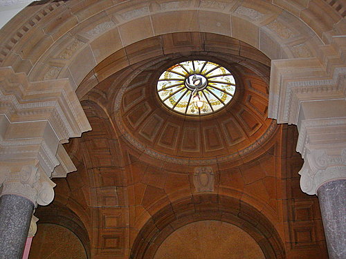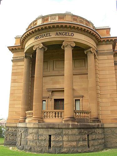 館前有二座騎士的雕像,左邊的騎士象徵和平。
