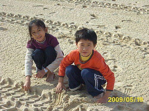 下沙灘前先照個相吧,受不了陽光的小朋友已經戴起太陽眼鏡了。