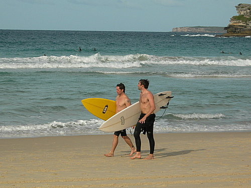 邦黛海灘(bondi beach)是雪梨奧運沙灘排球項目的主場地。此沙灘距離市區約僅半小時車程,因此吸引了相當多的澳洲人在此做衝浪或是日光浴。但由於過多的遊客到該處看免費的上空秀,造成當地人的困擾,所以當地人已經移轉到另依處較隱密的地方了,現在再來這裡已經看不到了,誰叫你們自己不給人看。