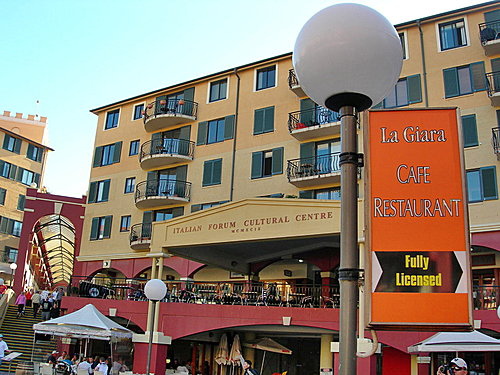位於雪梨南區著名的【小義大利區】,是義國建築風格、美食、購物、及寫意閒情於一身。羅馬式圓形廣場中央矗立著義大利詩人但丁的銅像,這個廣場被稱作但丁廣場,四周圍繞的餐廳、食飼和住宅樓宇綴著傳統的百葉窗、石磨牆壁和赤陶磚地面,抑或是《羅密歐與朱麗葉》中的經典露臺。這裏衆多的歐洲和澳洲名牌時裝及配飾店林朗滿目。白天,遊客可以悠哉遊哉地購物逍遙,或在露天的咖啡座中來杯香醇濃郁的義大利咖啡或品嘗義大利特色雪糕道地的冰淇淋,領略歐洲異國風情;到了夜晚,不妨選一家雅致的餐廳,輕鬆地享用豐富的美酒佳肴,以紅酒配義式小吃,都是不錯的選擇。小義大利區悠閒的情調與氣氛將會讓人流連忘返!