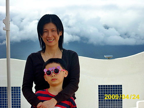 騎了一會兒的腳踏車,感覺有點熱了所以讓小朋友嚐嚐這裡的冰品---洛神花+曼波魚冰。