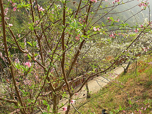 陸續出現粉紅色的櫻花及梅花,3種顏色的花交錯更讓人驚艷。