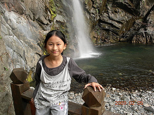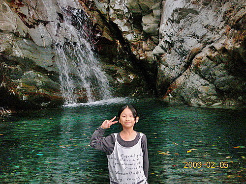 有點美麗的情人谷,這是彩虹瀑布流經的一個平坦低漥集水區,慣例是2個小朋友再次戲水一番,許多人會在此休息後再出發。