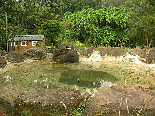 不知道這個池子是做什麼的?不過這次小朋友當作戲水池用, 後面的小屋是廁所, 有3間。