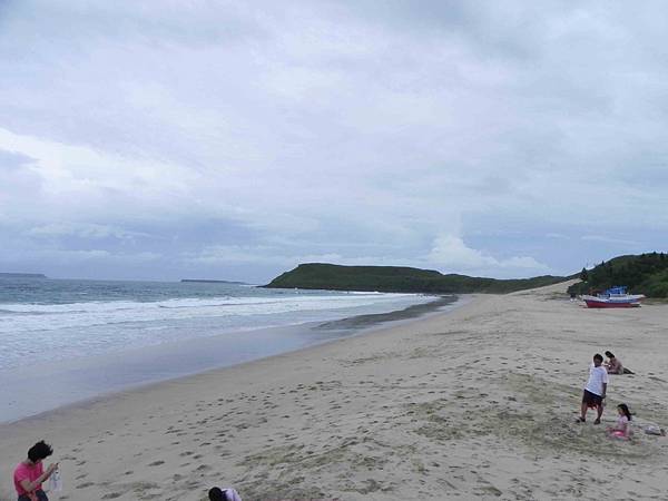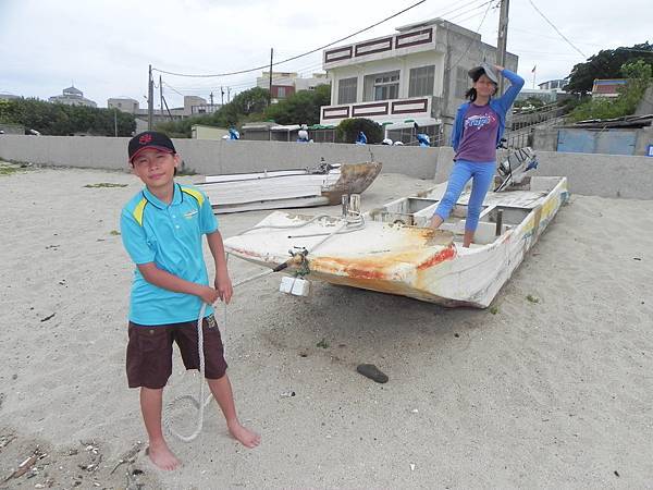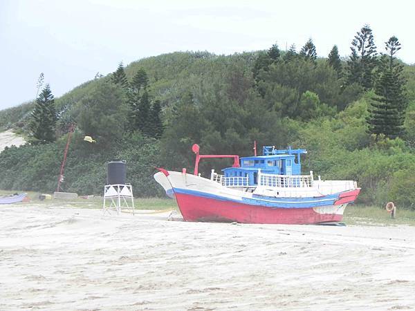 沙灘深處有一艘漁船及舢舨,已經變成大家取景玩耍的地方了。