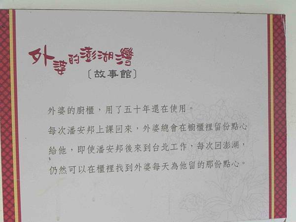 澎湖縣政府斥資整修潘安邦先生的故居,並與當地藝術團體合作,將之規畫為藝術創作展覽區;庭院外並設置了潘安邦與外婆嬉戲的銅像,走近時還可聽到「外婆的澎湖灣」一曲不斷播放,讓人彷彿也回到了當年的眷村時光與那段難以忘懷的美好記憶。