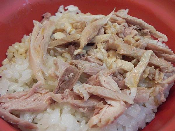 醃漬的黃蘿蔔我們不要,簡單的一碗飯,淋上醬汁的火雞肉飯還蠻入味的,火雞肉不老很好吃,這跟嘉義的有像。